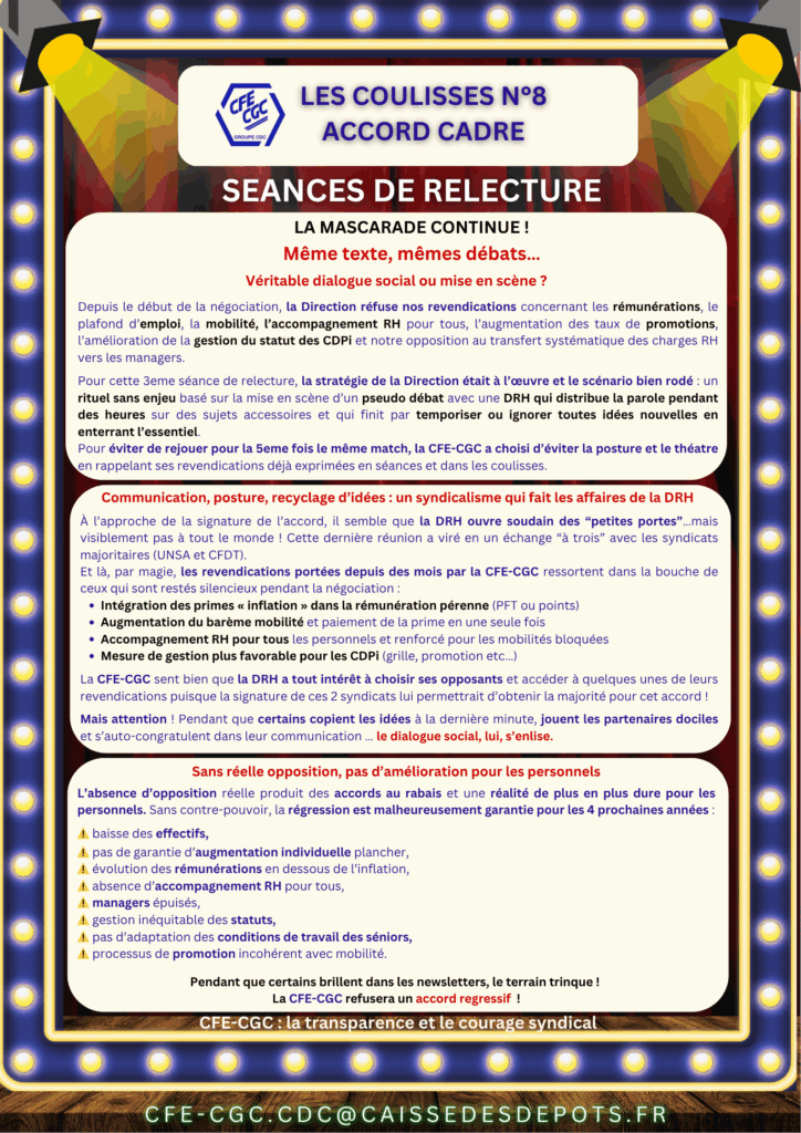 Les coulisses n°8 de l’AC – Même texte mêm débats… Véritbale dialogue social ou mise en scène ?