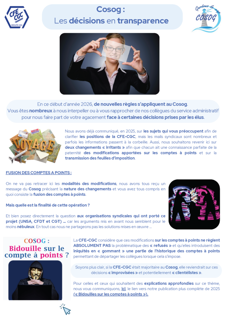 Cosog : la CFE-CGC ne partage pas les solutions "improvisées" et potentiellement "clientélistes" mises en oeuvre par le bloc majoritaire !