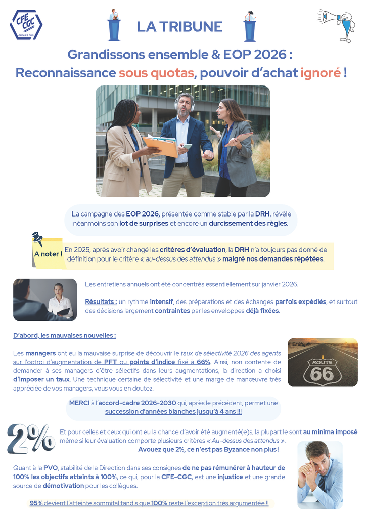 Grandissons ensemble & EOP 2026 : reconnaissance sous quotas, pouvoir d’achat ignoré ! 9 mars 2026 Campagne EOP 2026 : lots de surprises et durcissement des règles par la DRH